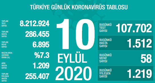 Sağlık Bakanı Fahrettin Koca, Twitter hesabından yaptığı değerlendirmede, "Bugün yapılan yaklaşık 100 bin yeni test ile 1509 yeni hasta tespit edildi. Ağır hasta sayımızda artış devam ediyor. Virüsü yenecek güç birlikte mücadeledir." ifadelerini kullandı.