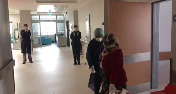 - Sağlık çalışanının taburcu edildiğini söylemesinin ardından diğer sağlık çalışanları hastayı alkışlarla uğurluyor.