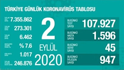 - Bugünkü tabloyu görmüş oluyoruz. Yeni vaka sayısı 1596, hayatını kaybeden kişilerin sayısı 45, toplam test sayısı 107 bin 927, iyileşen hasta sayısı 947. Ayrıca bu dönemde toplam ağır hasta sayımız 1017. Bugün binin üzerine çıkmış olduk. Hastalarda zatürre oranımız ise her geçen gün uyguladığımız tedavilerle, erken başlandığında sonuç aldığımızı görüyoruz, yüzde 7.6'ya düşmüş oldu. 14 Mart - 1 Haziran arasında vefat eden hastalarımızın yaş ve cinsiyete göre dağılımını görüyoruz. Yaş arttıkça kadın ve erkeklerde vefat oranı dramatik şekilde artıyor.