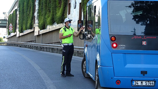İstanbul Pendik'te polis ekipleri trafikteki minibüsleri denetleyerek taşınan yolcu sayılarını kontrol etti. Fazla yolcu taşıdığı gerekçesiyle para cezası kesilen minibüs şoförünün, “Cezayı yedim afiyet olsun. Allah yemeyenlere de yemeyi nasip etsin” demesi ilginç anlara sahne oldu.