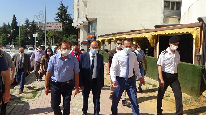 Bilecik eski Şehirlerarası Otobüs Terminali’nde Vali Şentürk öncülüğünde başlayan denetimde Atatürk Bulvarı, Teyfikbey Caddesi’ndeki tüm iş yerleri denetlendi. Çocuklara virüs önlemleri hakkında bilgi veren Vali Şentürk, annesi ile bebek arabasında gezintiye çıkan bir çocuğa da esprili bir şekilde "Masken nerede" diyerek, anneyi uyardı. Atatürk Bulvarı üzerinde simitçi dükkanlarındaki iş yeri sahiplerini uyaran Vali Şentürk, dükkan önüne konulan masalarda kimsenin oturmaması yönünde uyarıda bulunarak, vatandaşların alacağını alarak devam etmeleri gerektiğini söyledi.
