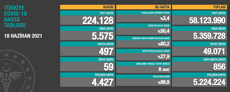Sağlık Bakanlığı'nın sitesindeki Koronavirüs Bilgilendirme Sayfası'nda 18 Haziran koronavirüs tablosu yayınlandı. İşte 18 Haziran koronavirüs günlük vaka ve ölü sayıları...