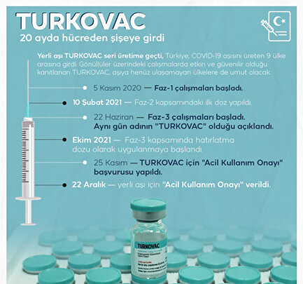Türk bilim insanları gece gündüz aralıksız çalıştı. TURKOVAC'ın etkinliği ve güvenilirliği binlerce gönüllünün katılımıyla kanıtlandı. Yerli inaktif aşı TURKOVAC'ta son aşamaya gelindi. Acil kullanım onayı alındı, seri üretim süreci başladı.