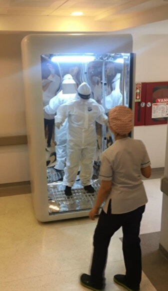 Böylece, hastayla temas sonrası virüsün bulaştığı kişisel koruma ekipmanının, başka bir hastayla temas etmeden veya sağlık çalışanı soyunurken kendisine bulaşmadan virüsten arınmasının sağlandığını belirtti.