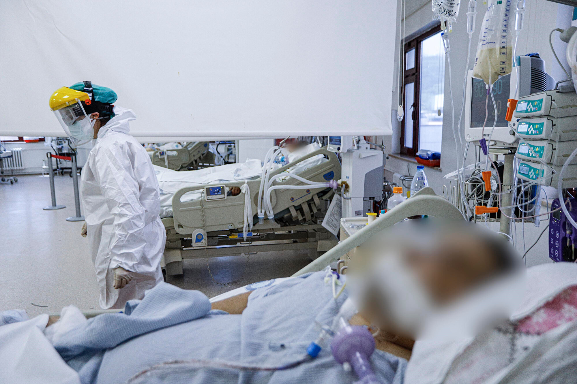 Türkiye'de koronavirüs vakalarının en çok görüldüğü Ankara'da yüzde 100 doluluk oranına ulaşan Gazi Üniversitesi Hastanesi'nin yoğun bakım üniteleri görüntülendi. Yatakların tamamı dolu olan yoğun bakımda, genç hasta sayısının fazla olması dikkat çekti.