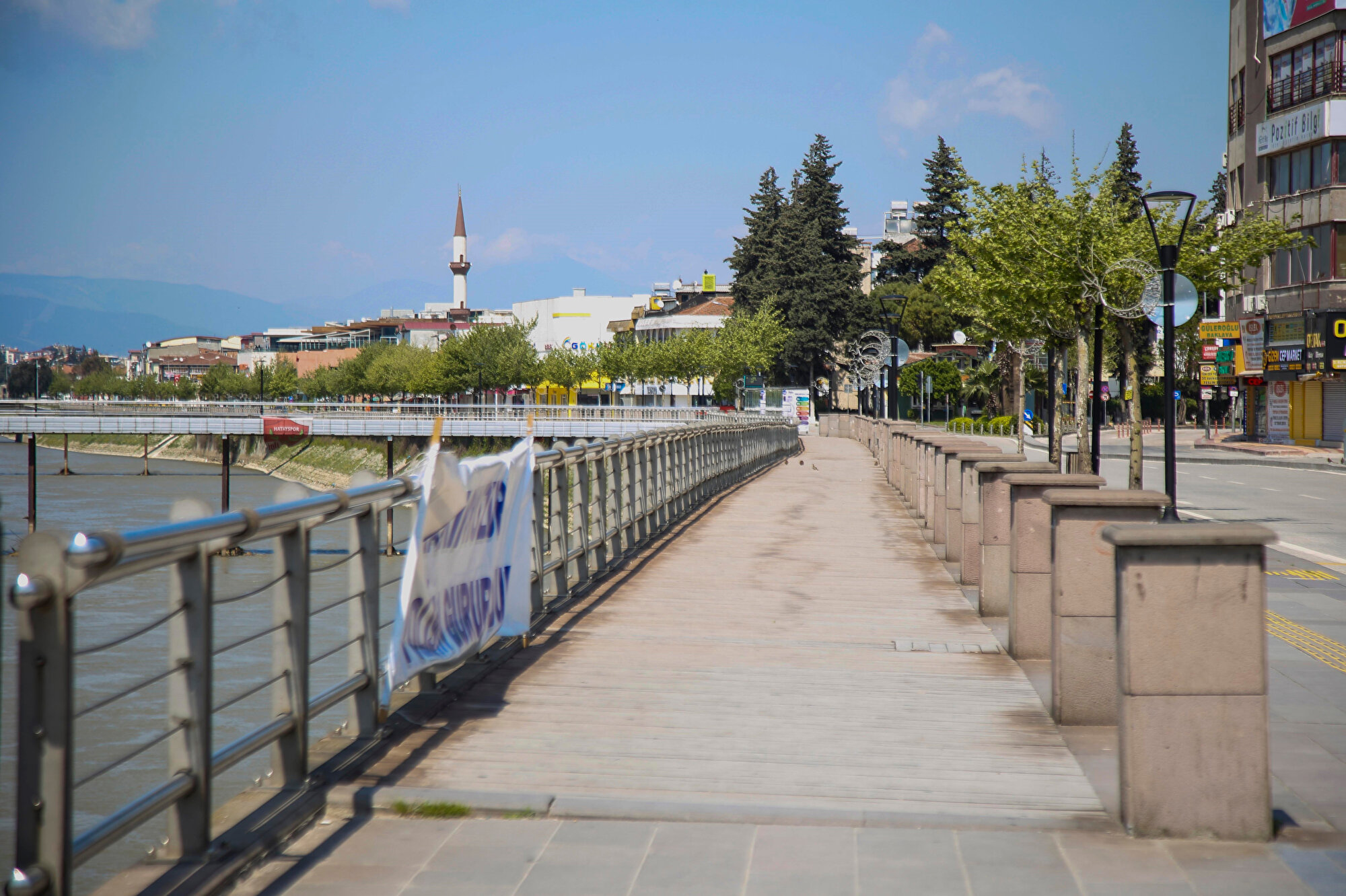 Manisa'da sokakların sessizliği gözlemlenirken, kentin en işlek yolları olan Mimar Sinan Bulvarı ile Mustafa Kemal Paşa, 8 Eylül, Kenzi, İzmir ve Kumludere caddeleri yasağın ardından boş kaldı.