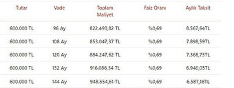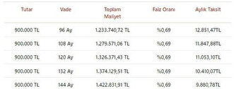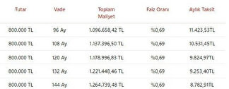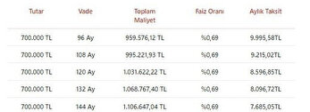 15 yıl 0,69 faiz ile konut kredisi ne kadar yapıyor?