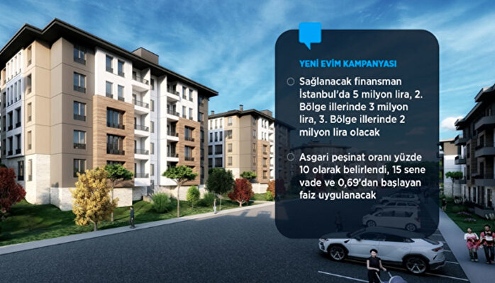TOKİ orta gelir konut kampanyası faiz oranları bu projeden yararlanmak isteyenlerin takibinde. TOKİ Sosyal Konut Projesi sonrası orta gelir grubu konut kampanyası için detaylar netleşti. Hazine ve Maliye Bakanı Nureddin Nebati, "Orta Gelirliye Yönelik Konut Kampanyası"nın detaylarını açıkladı. Nebati, "Yüzde 10 peşinat, 15 yıla kadar vade ile 0,69’dan başlayan oranlarla kredi desteği sağlanacak" dedi. Peki, TOKİ orta gelirliye konut kampanyası ödeme planı nasıl olacak? 15 yıl 0,69 faizden konut kredisi geri ödene ne kadar? İşte detaylar...