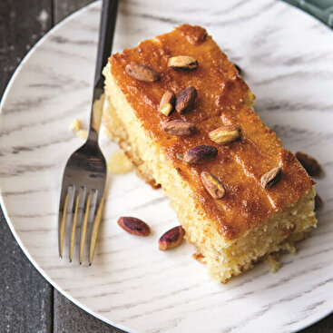 Fırından alıp karelere kesin ve soğuk şerbeti üzerinde gezdirin. Çekmesi ve soğuması için zaman tanıyın ve fıstık serpip servis edin.