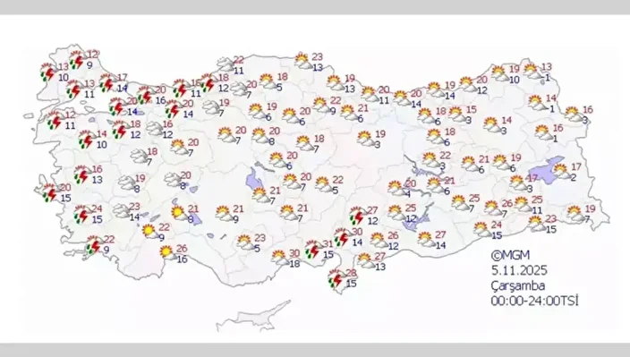 Meteoroloji Genel Müdürlüğü tarafından yapılan tahminlere göre, yurt genelinde yağış beklenmiyor. Yurdun batı kesimlerinin parçalı bulutlu, diğer yerlerin az bulutlu ve açık geçeceği tahmin ediliyor. Peki bugün hava nasıl olacak? İşte Meteoroloji Kasım 2025 hava durumu raporu.