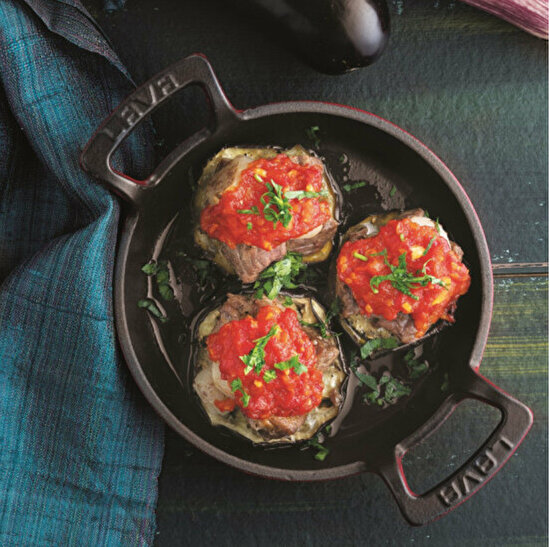 - Servis tabağına tek katını alın, üzerine soğanlı etten paylaştırın, domatesli sostan üzerine yayın ve kıyılmış maydanoz serpip servis edin.