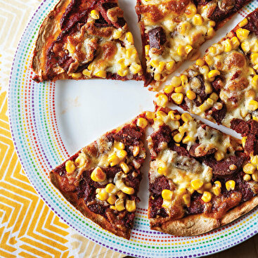1 saat 30 dakika dinlenme süresi olan vejetaryen pizza 10 dakikada hazırlanıp 25 dakikada pişiyor.