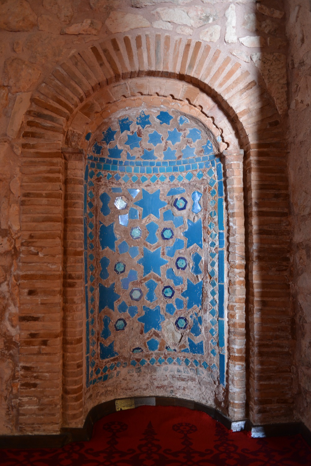 2008 restorasyonunda ortaya çıkarılan mozaik süslemeli özgün mihrap.