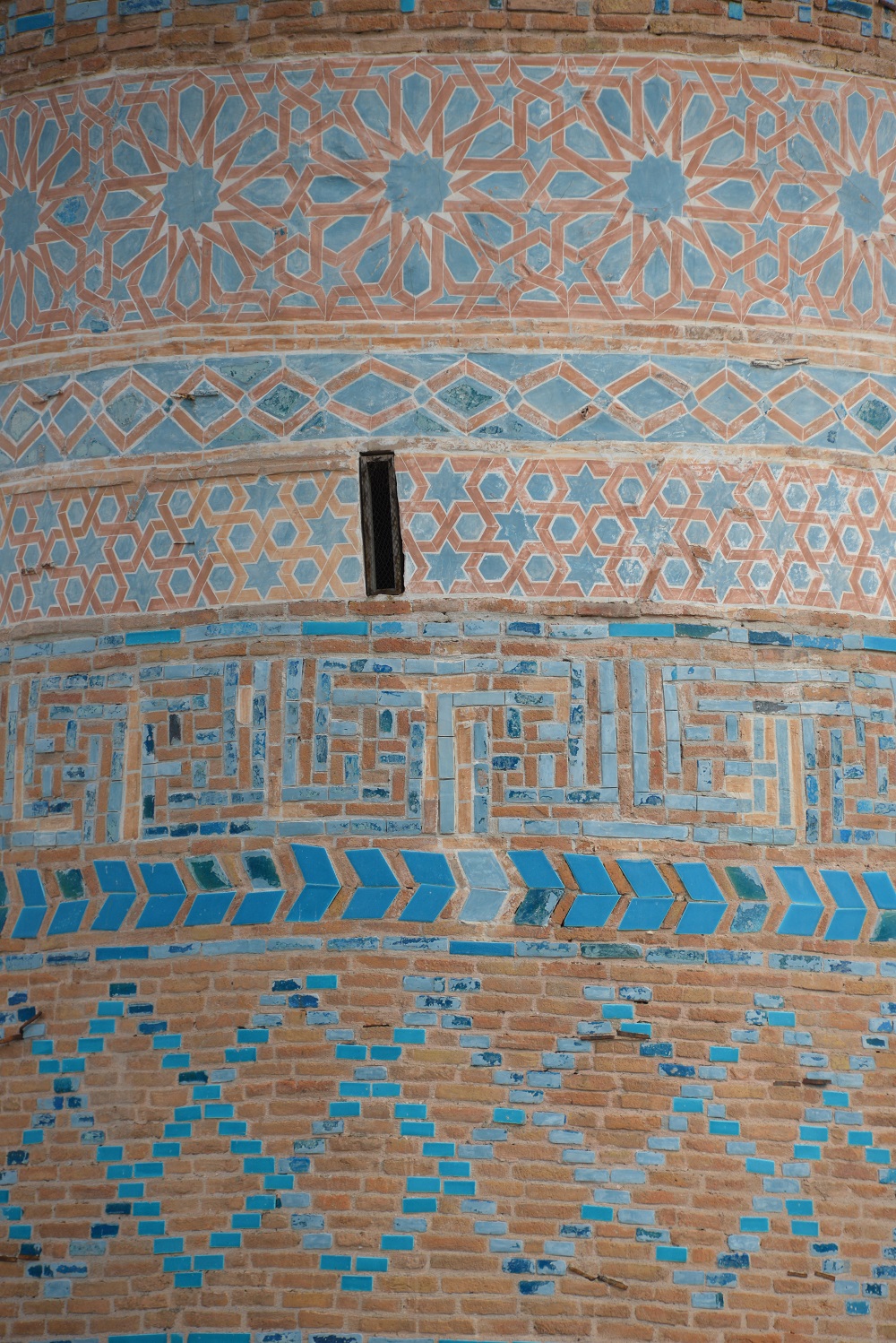 Dikdörtgen prizma kaide üzerine yuvarlak gövdeli olarak oturtulmuş, kalın ve firüze çinilerle süslü olan bu minarenin kaidesinde kufi yazılar, geometrik geçmeler, örgü ve yıldız motifleri bulunuyor. Gövdesinde bulunan ancak bir kısmı dökülen çini ve mozaikler, 12. yüzyıla tarihlenen ender örnekler arasında sayılıyor.