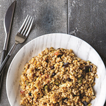 Patlıcanlı firik pilavı
