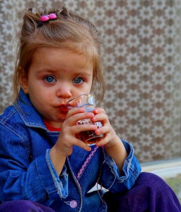 Evin küçükleri, bütün gün oruç tutmuş gibi iftar sonrasında ailelerinin çay keyfine de eşlik eder.