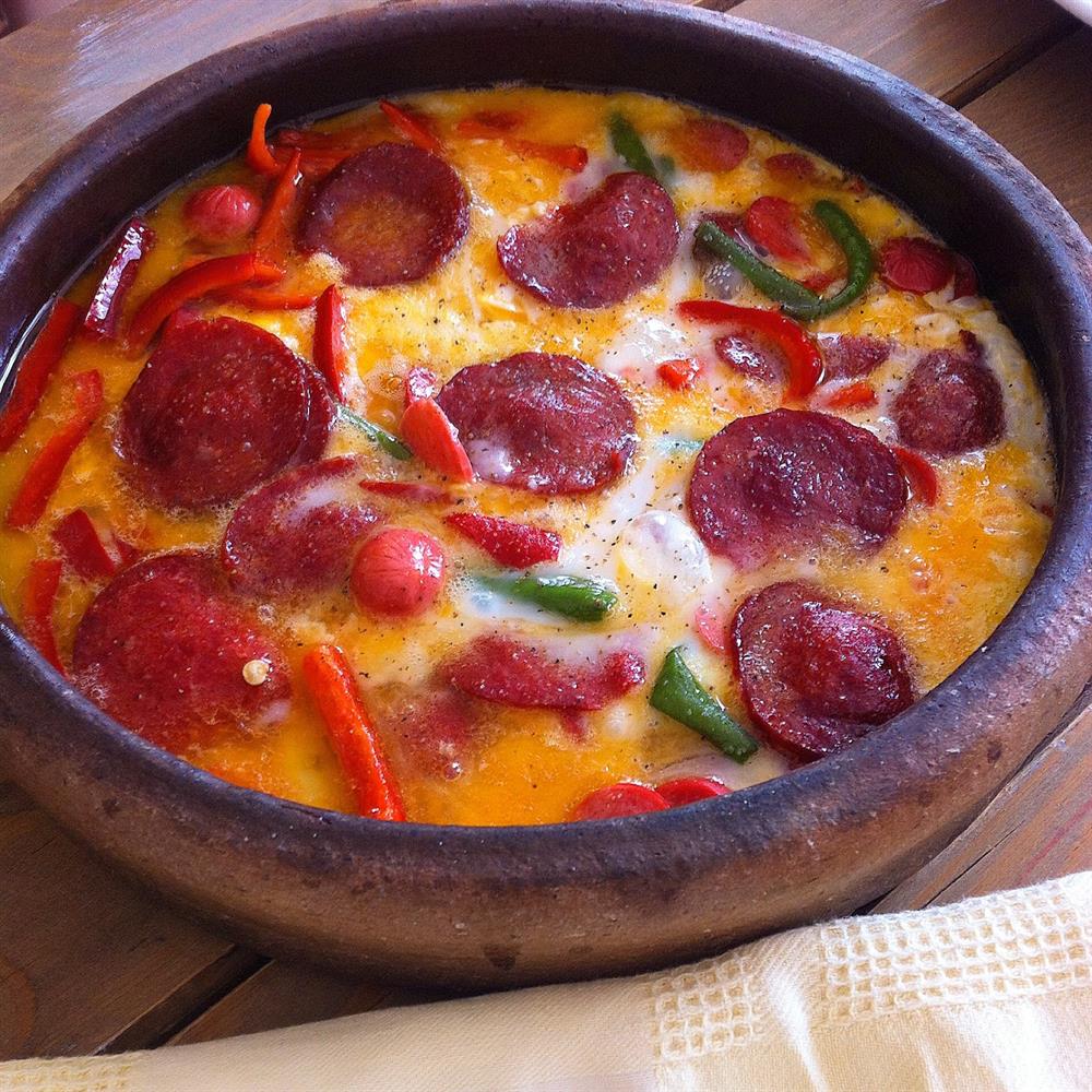 Adı pizza olunca kalorisini fazla sanmayın; vitamin deposu yumurtayı az yağda pişirdiğinizde, birçok besine göre kalorisi çok daha az oluyor. Şimdi gelelim tarife; kekik, karabiber ve tuzla çırptığınız yumurtaları, önceden ısıttığınız ve yağladığınız tavanın içine dökün. Karışımı yaklaşık 4-5 dakika pişmeye bırakın. Karışımın üzerine sırasıyla salça ve rende peynirleri ilave edin. Ardından dilediğiniz miktarda zeytini de ekledikten sonra, tavanın kapağını kapatıp peynir eriyinceye kadar pişirin.