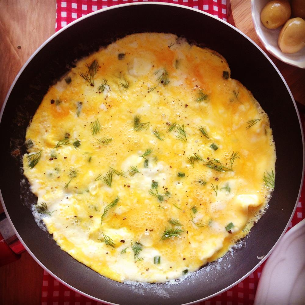 Yumurtayı pişireceğiniz tavayı hafif yağlayın ve biraz ısıtıp hazırladığınız karışımı dökün. Bir süre karıştırmadan bekleyin ve yumurtanın altı kızarınca bir kaşık yardımıyla tersini çevirin. Diğer yüz pişmeye başlayınca hazırladığınız domatesli biberli karışımı omletin ortasına yayın; üzerine kaşarları da ekleyin. Dairenin iki ucunu malzemenin üstüne kapatın ve ters şekilde çıkarıp servis edin. Süslemek için zeytin ya da maydanoz da kullanabilirsiniz.