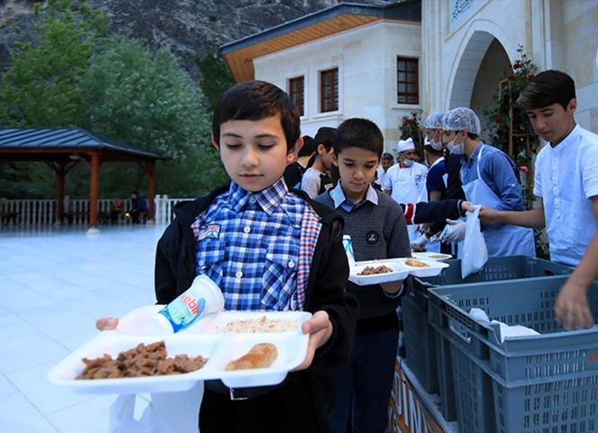 Malatya'da, Es-Seyyid Osman Hulusi Efendi Vakfı tarafından düzenlenen iftar programına katılan bin kişi, Somuncu Baba Külliyesi'nde oruçlarını açtı.