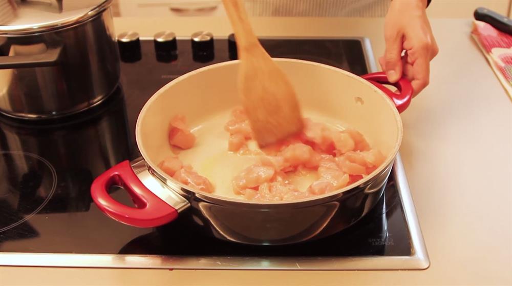 Tavuk ve yağı yapışmaz bir tencereye alın ve suyunu çekene kadar soteleyin.