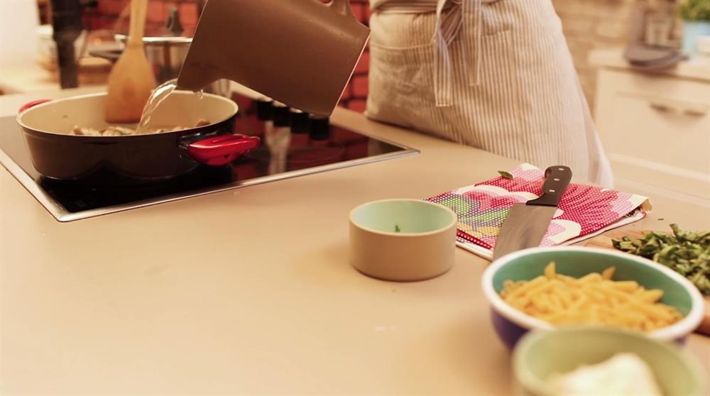 İki parmak sıcak su ilave edin ve makarnaları ekleyin.