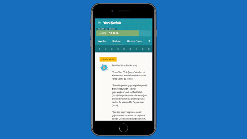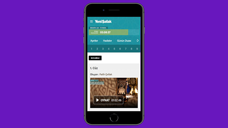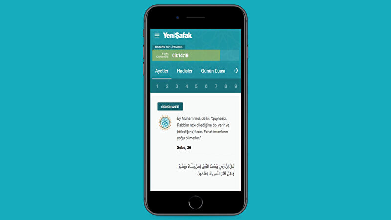 Dini bilgiler, il il imsakiye, iftar ve sahur saatleri için Yeni Şafak Ramazan 2021 sayfasını hemen ziyaret edin. Orucu bozan şeyler, oruç için sık sorulan sorular, iftara özel yemek tarifleri, mukabele, ayet, hadis ve gün gün dualar Yeni Şafak’ta.