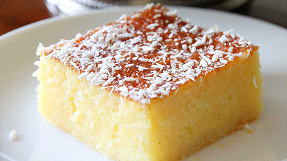 - Dilimlediğiniz ılık tatlıya rendelenmiş Hindistan cevizi serpiştirip servis edin.