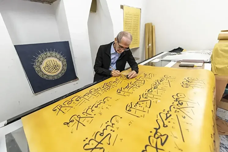 «Это большая радость — создавать произведения, которые под силу немногим», — говорит каллиграф. Он отметил, что, взяв в руки тростниковое перо, полностью погружается в искусство, где каждая линия и каждое слово имеют духовное значение.