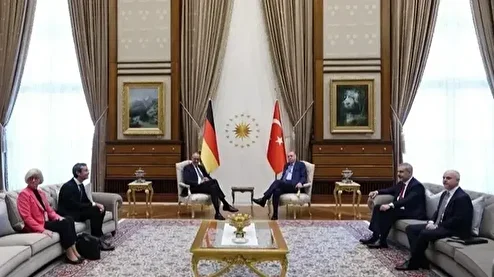 Президент Турции Реджеп Тайип Эрдоган и канцлер Германии Фридрих Мерц провели переговоры в расширенном составе с участием делегаций двух стран. С турецкой стороны на переговорах присутствовали министр иностранных дел Хакан Фидан и главный советник президента по внешней политике и безопасности Акиф Чагатай Кылыч.