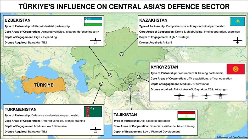 Так, используя культурную и историческую близость, Турция усиливает маркетинговое присутствие на фоне растущего интереса стран региона к модернизации вооружённых сил. Несмотря на ограниченные оборонные бюджеты, государства Туркестана величивают закупки военной техники. В этих условиях турецкое оружие, особенно беспилотники и средства связи становится всё более востребованным.
