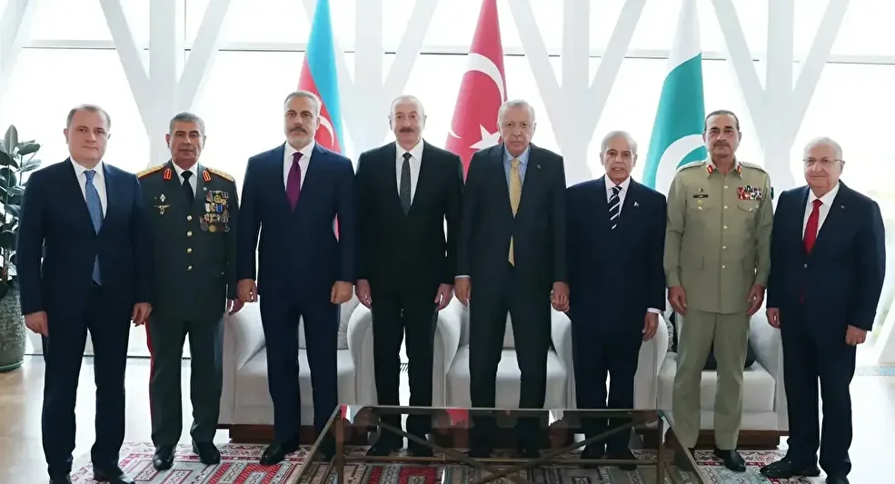 Согласно официальному сообщению по итогам его комментариев в воскресенье во время обратного рейса из Баку, где он встретился с премьер-министром Пакистана Шахбазом Шарифом, визит трёхсторонней делегации направлен на установление постоянного прекращения огня и скорейшее достижение мира между странами.