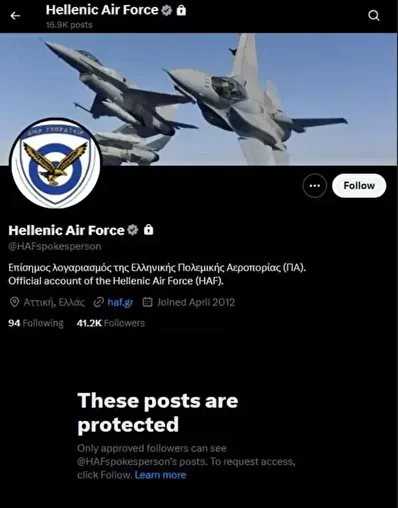 После того как пост ВВС Греции оказался под мощной волной критики со стороны турецких пользователей X-платформ, официальный аккаунт греческих ВВС был закрыт, что стало прямым следствием общественного давления.
