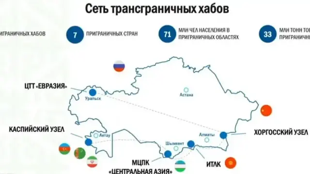 Министерство торговли Казахстана сообщило, что формирование пяти новых трансграничных хабов способно повысить объём вывоза несырьевых товаров страны приблизительно на 30%. В настоящее время на объектах ведутся работы по подключению электроснабжения, водных ресурсов, транспортной инфраструктуры и инженерных коммуникаций.