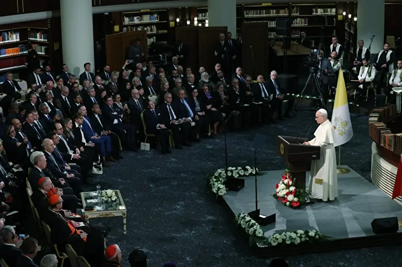 Папа отметил, что человечество прошло через века конфликтов, а мир по-прежнему дестабилизируется амбициями, пренебрегающими справедливостью. Он назвал богатое историческое наследие Турции «великим даром».