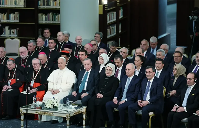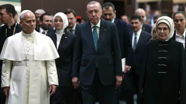 Президент Реджеп Тайип Эрдоган выступил перед гостями после встречи делегаций с Папой Львом XIV, главой Ватикана. Выразив удовлетворение в связи с приёмом Папы Льва XIV и его делегации в Анкаре, Эрдоган отметил, что считает первую международную поездку понтифика в Турцию после вступления в должность очень значимой во всех отношениях.