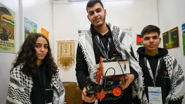 Палестинские участники Разан Шавар, Джехад Абудайя и Мустафа Асси выступают в категории «Будущие новаторы» на Всемирной олимпиаде роботов, которая проходит в Сингапуре 28 ноября 2025 года. Команда представляет собственный проект в области робототехники и надеется показать перспективы молодых палестинских инженеров на международной площадке.