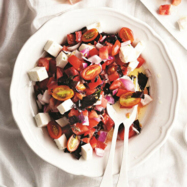 Peynirli soğanlı domates salatası 10 dakikada hazırlanıyor.