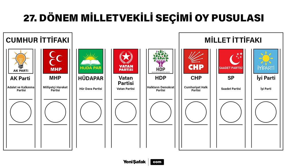 24 Haziran’da yapılacak seçimlerde kullanılacak 2 ayrı oy pusulaları da geçtiğimiz günlerde YSK’da yapılan kura çekimi ile belirlendi. YSK’ya başvuran siyasi partiler ve cumhurbaşkanı adaylarının kesinleşmesinin ardından yapılan kura çekimi ile sıralar belli olurken pusulalarda da dikkat çeken ayrıntılar ortaya çıktı. Milletvekilliği seçimlerinde kullanılacak oy pusulaları 27 yıl sonra ilk kez bu kadar kısa olacak.