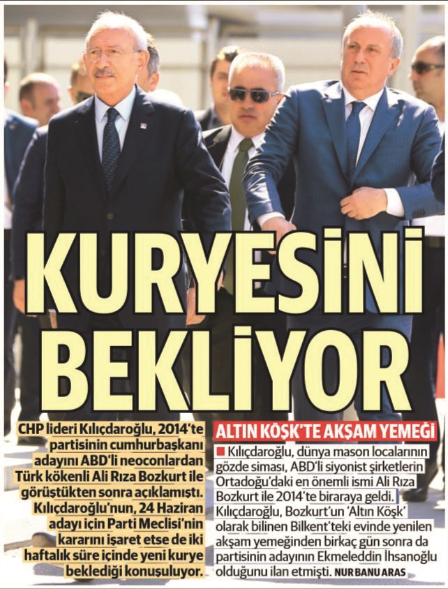 2010 yılında Deniz Baykal’a yönelik kaset kumpasıyla CHP’ye genel başkan olan ve koltuğa oturduğu günden beri sandıkta 8 kez yenilgi yaşamasına rağmen koltuğunu bırakmayan Kılıçdaroğlu, 10 Ağustos 2014’teki cumhurbaşkanlığı seçiminde olduğu gibi 24 Haziran 2018 için de sufleyi tam zamanında aldı. 4 yıl önce ABD’den gelen ‘önemli bir misafiri’ ağırlayan CHP Lideri, okyanus ötesinden aldığı talimatın ardından “Cumhurbaşkanlığı için çatı adayımız Ekmeleddin İhsanoğlu” demişti. Türkiye kökenli Neoconların simge isimlerinden Ali Rıza Bozkurt’un kurye görevi ifa ettiği süreç, 10 Ağustos’ta hem CHP hem de İhsanoğlu için kabusa dönüşmüştü. 2018’e gelindiğinde, 24 Haziran için henüz aday açıklamayan ve Parti Meclisi’nin kararını işaret ederek zaman kazanmaya çalışan Kılıçdaroğlu’nun tıpkı 2014’teki gibi ‘kurye beklediği’ konuşuluyor. Cuma günü İP Genel Başkanı Meral Akşener’le gizli bir görüşme gerçekleştiren Kılıçdaroğlu’nun dünkü sürpriz vekil transferi, CHP Lideri’nin ‘kuryeyle çoktan buluştuğu’ yorumlarına neden oldu.