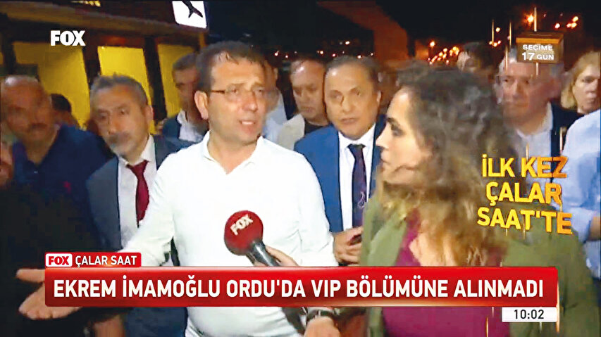 CHP Genel Başkan Yardımcısı ve Ordu Milletvekili Seyit Torun’un Ordu’da kalacak olmasına rağmen CHP’li grubu VIP’den geçirme girişimi başarısız oldu. Ekrem İmamoğlu ve beraberindekiler arasında kız kardeşi Neslihan İmamoğlu, babası Hasan İmamoğlu, annesi Hava İmamoğlu, kurumsal iletişim danışmanı Murat Ongun, Beylikdüzü belediye meclis üyesi Fatih Keleş, partililer Veysel Taşdemir, Zilan Karakurt, Onur Günal’ın yanı sıra FOX muhabiri Gülşah İnce, FOX kameramanı Çağlar Güner, Haber Global TV muhabiri İrem Şahin Seles ile Sedat Sarp’ın da yer alması dikkat çekti. Polis ve valiye edilen hakaretleri görmezden gelen FOX, yine algı operasyonuna girişti. Skandal olay, “İmamoğlu VIP bölümüne alınmadı” diye haberleştirildi.