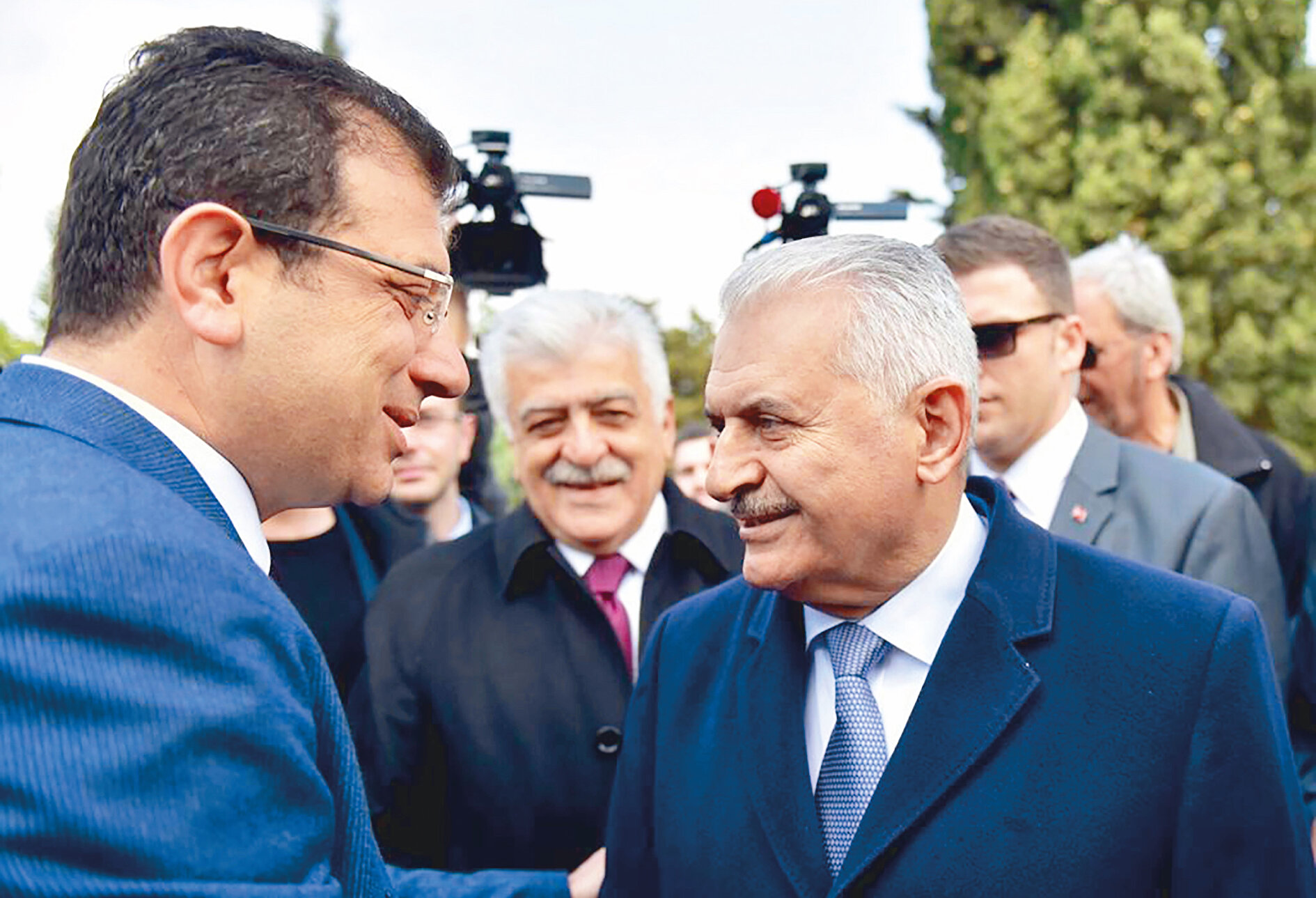 - AK Parti İstanbul Büyükşehir Belediye Başkan Adayı Binali Yıldırım ile CHP'li Ekrem İmamoğlu, yerel seçim sürecinde ilk kez 8. Cumhurbaşkanı Turgut Özal'ın mezarı başındaki anma programında karşılaşarak tokalaştı. İmamoğlu, Yıldırım'a "Nasılsınız?" diye sordu, Yıldırım da teşekkür ederek "Siz nasılsınız?" dedi. İmamoğlu, teşekkür ettikten sonra, "Allah kabul etsin" dedi. Yıldırım "Sağol" diyerek yoluna devam etti.