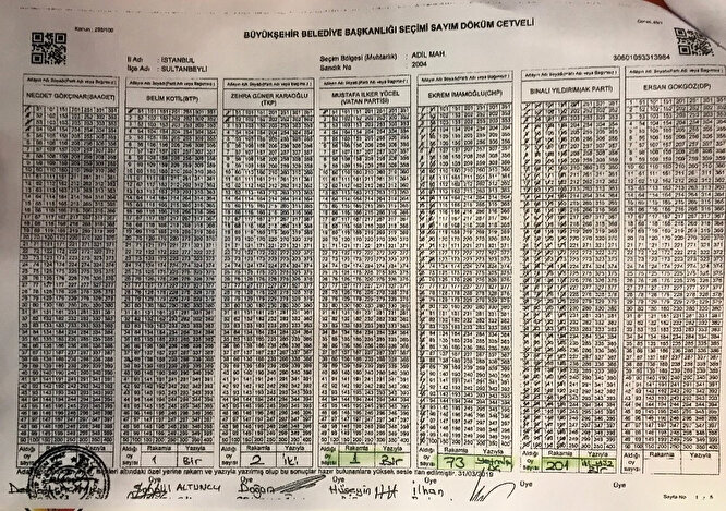 Skandal bununla da bitmedi. Sayım döküm cetveline göre Ekrem İmamoğlu 73 oy aldı. Ancak YSK’ya gönderilen belgede İmamoğlu 201 oy almış gibi gösterildi. Yani hem Yıldırım oyları yok sayıldı, hem de İmamoğlu’na 128 oy fazladan yazıldı.