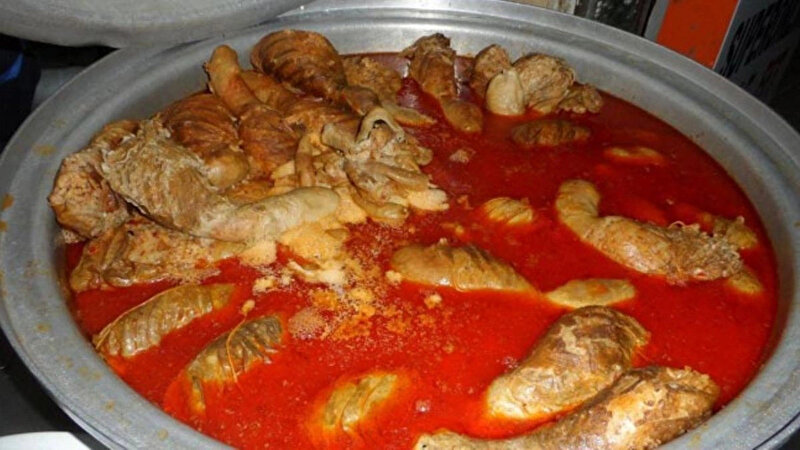 - Malzemeler, şırdanlara el yordamıyla doldurulur. Bütün şırdanlar doldurulduktan sonra tencereye yerleştirilir. 3 su bardağı su ve tuz ilave edilip, 60 dakika pişirilir, üzerine bolca kimyon dökülerek yenir.