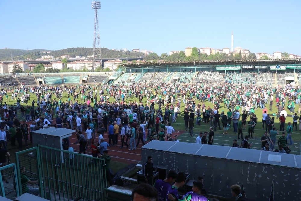 TFF 3. Lig 3 Grup’ta mücadele veren Kocaelispor, Büyükçekmece Tepecik’e 2-1 yenilmesinin ardından 46 yıldır maçlarını oynadığı İsmetpaşa Stadı’na veda etti. Maç sonrasında sahaya inen yeşil-siyahlı taraftarla kale direkleri, koltuk ve çimleri söktü.