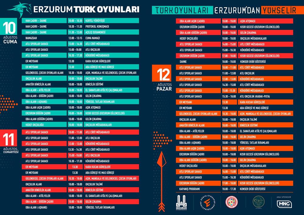 Erzurum Büyükşehir Belediyesi, Dünya Etnospor Konfederasyonu, Türkiye Geleneksel Spor Dalları Federasyonu, Okçular Vakfı ile MNG Alışveriş ve Yaşam Merkezi'nin iş birliğinde Erzurum Türk Oyunları Festivali düzenlenecek.