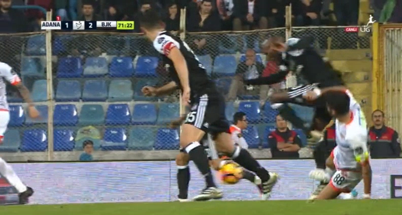 Adanaspor'un Beşiktaş'la oynadığı maçta Atiba'ya yaptığı hareket sebebiyle kırmızı kart gören Bekir Yılmaz takımını 10 kişi bıraktı.