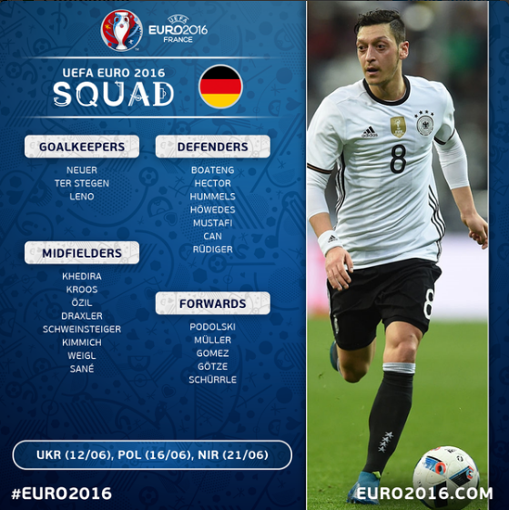 Fransa'da düzenlenecek EURO 2016'da Almanya'nın kadrosu belli oldu.