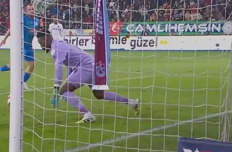 Andre Onana'nın koruduğu Trabzonspor kalesinde yer alan filelerde taraftarların verdiği atkının yer aldığı görüntülendi.