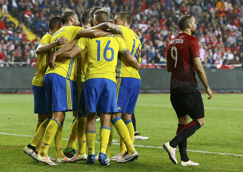 Millilerimiz 32. dakikada Cenk Tosun'un attığı golle 1-0 öne geçti. Ozan Tufan'ın kafayla indirdiği topa Victor Lindelöf dokunamadı ve top ceza sahası içerisinde sol çaprazda bulunan Cenk Tosun'a geldi. Cenk Tosun'un gelişine çektiği şutta top kaleci Robin Olsen'in sağından ağlarla buluştu.