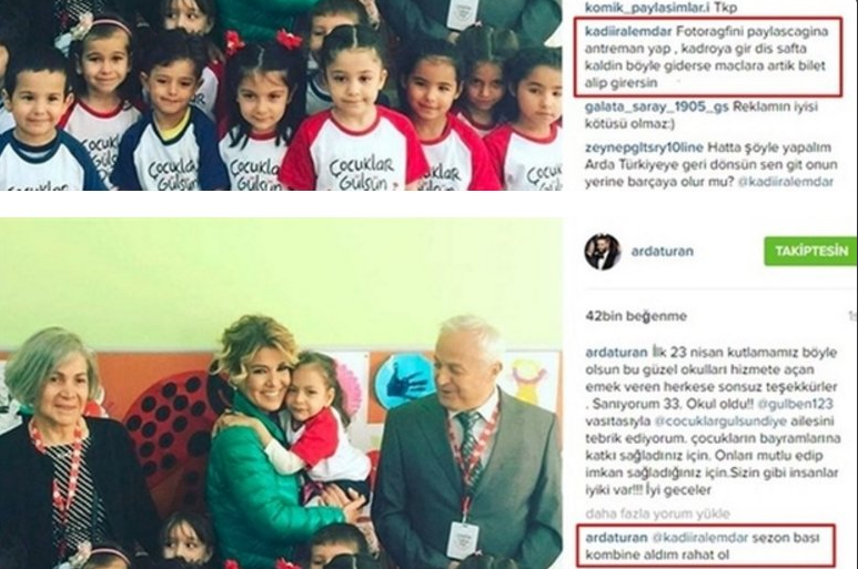 Arda Turan, 23 Nisan nedeniyle kendisine ait instagram hesabından, Gülben Ergen'in 'Çocuklar Gülsün Diye' projesinden bir fotoğraf paylaştı ve bu proje kapsamında yapılan 33. okul nedeniyle Gülben Ergen'i kutladığı bir mesaj yazdı.